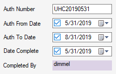 The Auth Complete? check box is manually checked by the User to indicate all CPT codes for which Authorization approval has been confirmed. These codes will show up as Authorization Completed in Charge Entry.