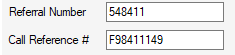 Additional fields are available to record both the Referral Number and Call Reference Number, if provided: