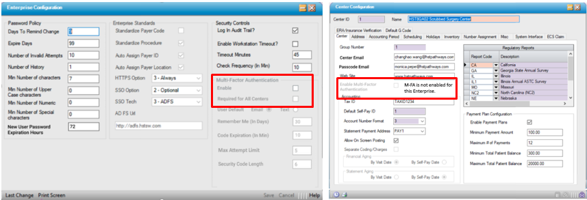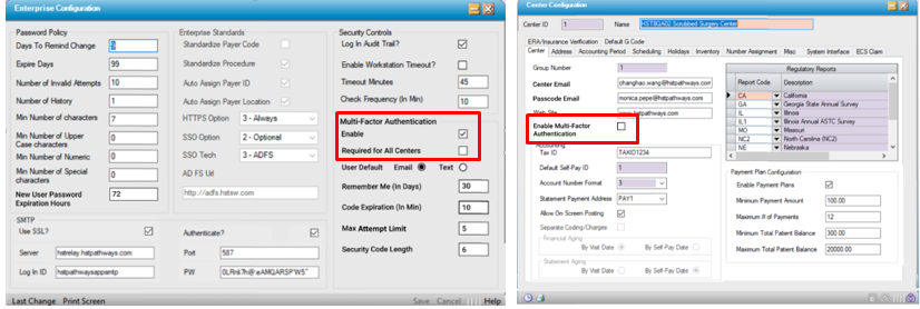 The Center/Enterprise Administrator can work with HST Support to determine the best configuration for the organization. MFA can be piloted at one Center then gradually turned on for each remaining Center over time. Once MFA has been implemented at all Centers, Required for All Centers in the Enterprise can be turned ON. This configuration would automatically opt in all centers for MFA and not allow the Center setting to be changed.