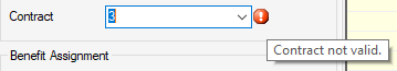 If the date of service scheduled is not within the effective date range of the contract selected, an error ball will be invoked with a hover message indicating that the contract is not valid.