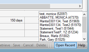 Open Recent will provide the last 10 accounts accessed. Double click on the patient name to reopen an account.
