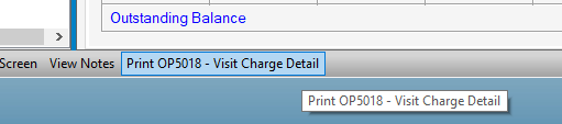 The OP5018 - Visit Charge Detail report can also be printed directly from the navigation tool bar.