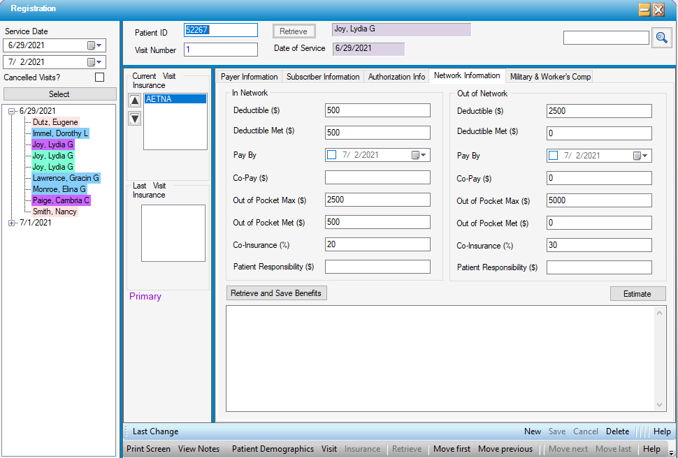 On the Network Information tab, enter the appropriate deductible, co-pay, co-insurance and out of pocket benefits or - if Real Time Eligibility was utilized - select the