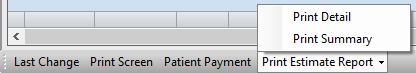 The Print Estimate Report function will run a copy of the completed Patient Estimate. This report can be printed directly from the form or from the reports menu. (OP5028 - Patient Estimate) There are three options that can be selected prior to printing the estimate: