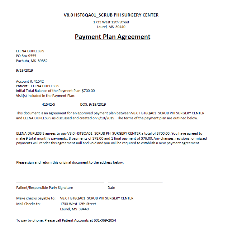 Once the payment plan has been established, a Payment Plan Agreement can also be printed directly from the Payment Plan tab for the patients to sign.
