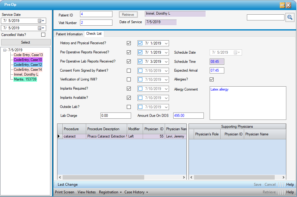 The Pre Op form is the “Pre Op Dashboard”. The form is designed to ensure that the patient information and communication process has been verified prior to the day of the procedure.