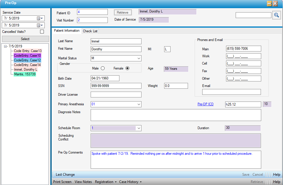 - The Pre Op Comments may be used to document what has been discussed with the patient to prepare for their arrival.