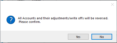 This will invoke a confirmation screen. To confirm, select yes. If the intention was not to reverse all accounts and their adjustments/write offs on a Bulk Payment, select no and no action will be taken.